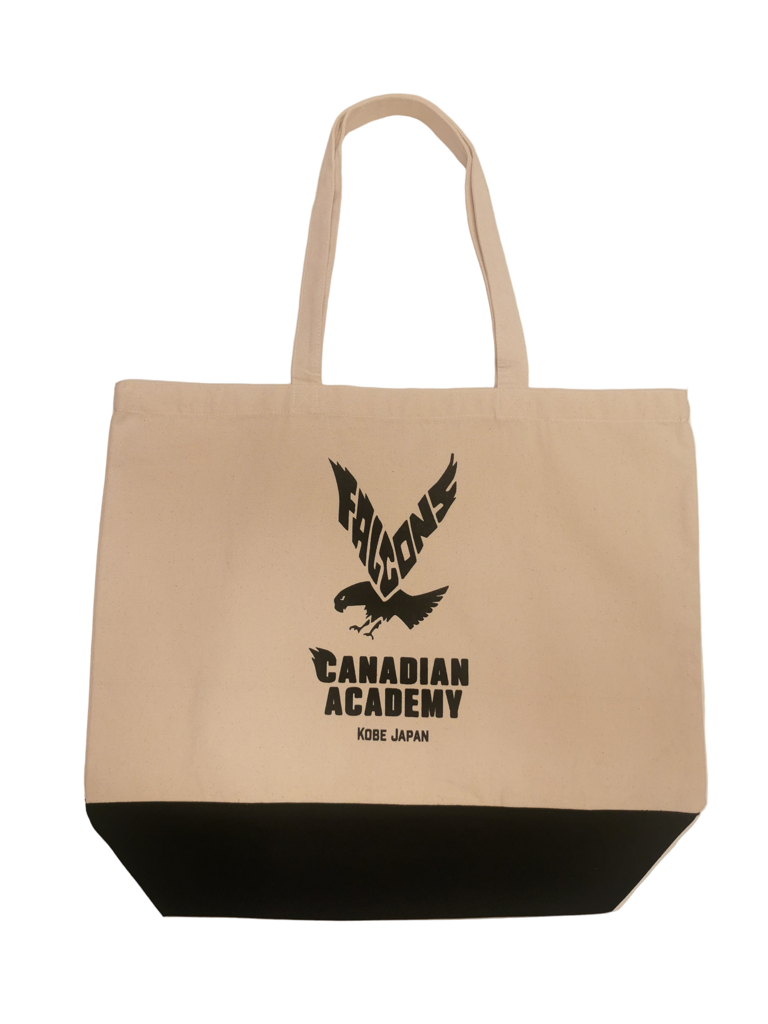 Natural and black canvas tote bag with Falcon logo on one side. Black bottom gusset. Size: 48x15x40 cm plus handles
